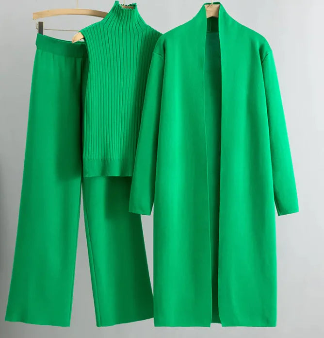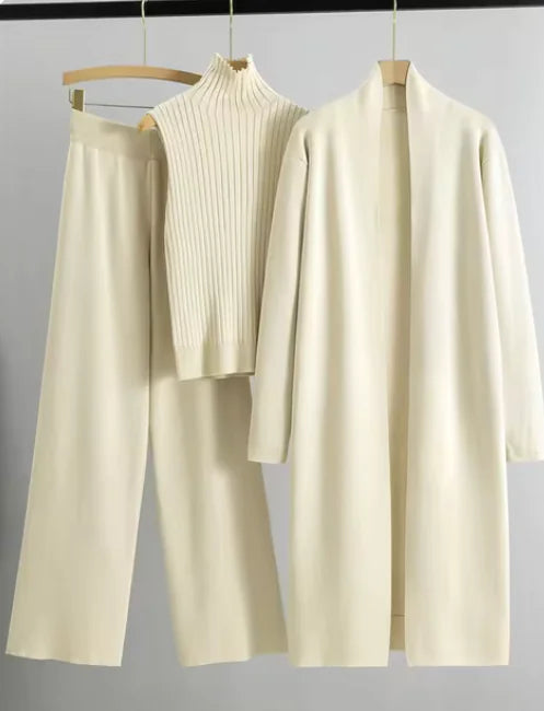 Ensemble 3 pièces femme - Gilet long, pull sans manches et pantalon large en maille