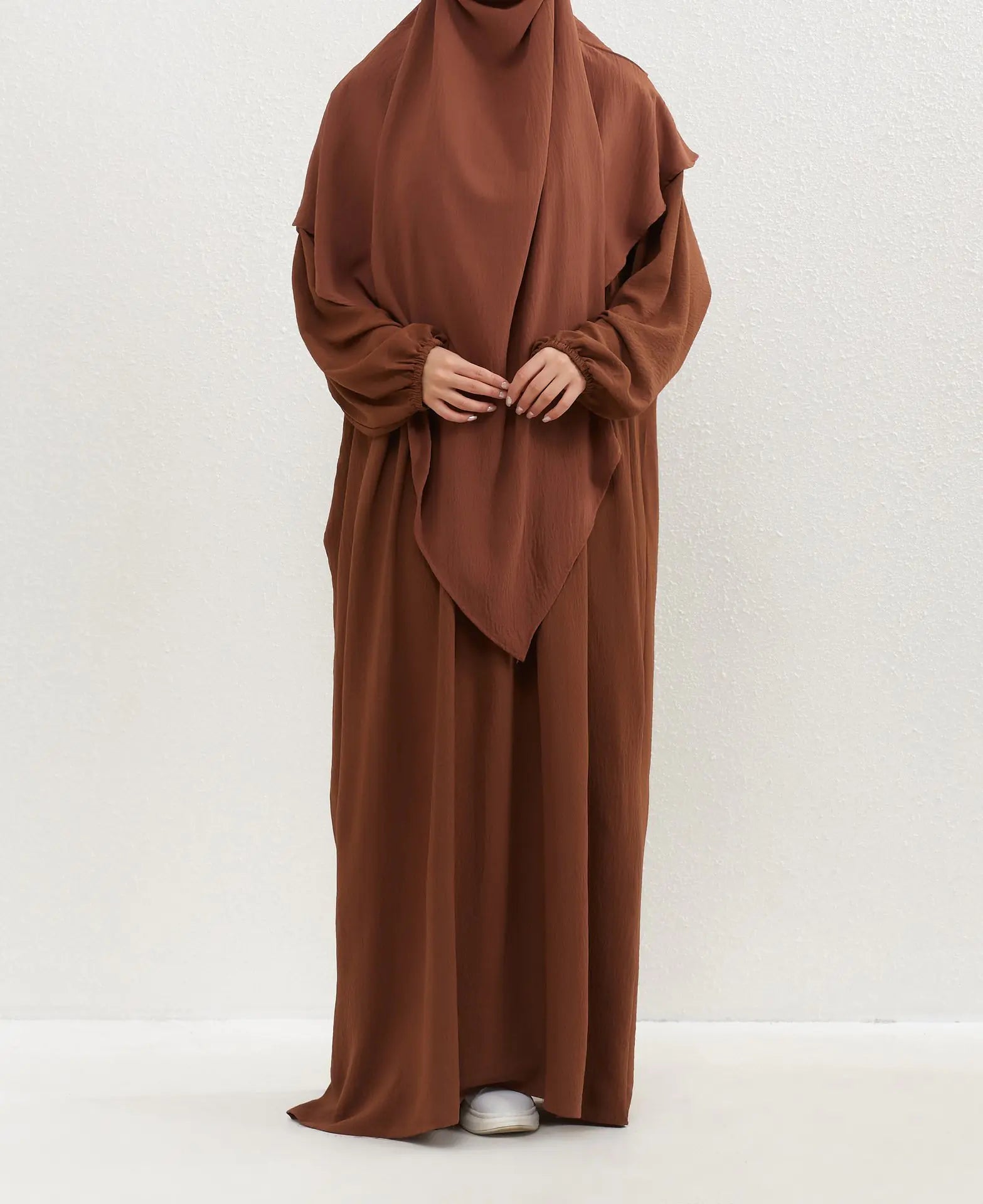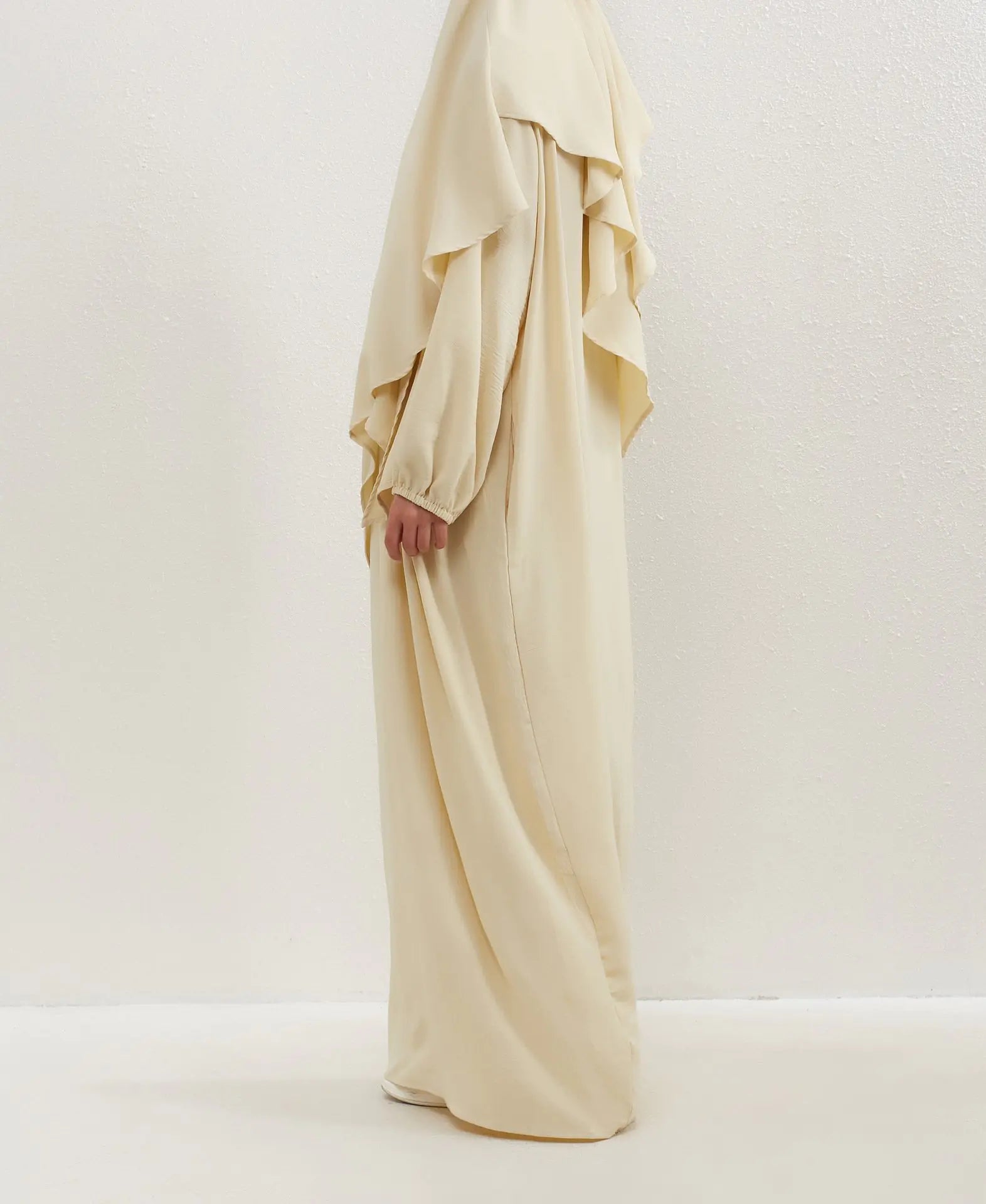 - Coupe longue et fluide, idéale pour un look pudique et raffiné
