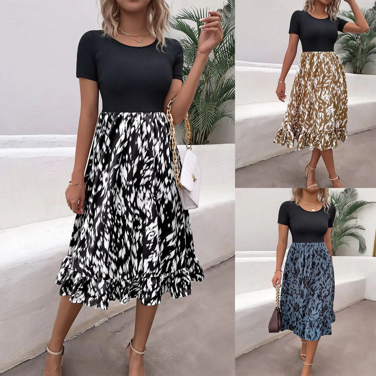 Robe Mi-Longue à Volants et Imprimé Léopard - Style Chic et Féminin
